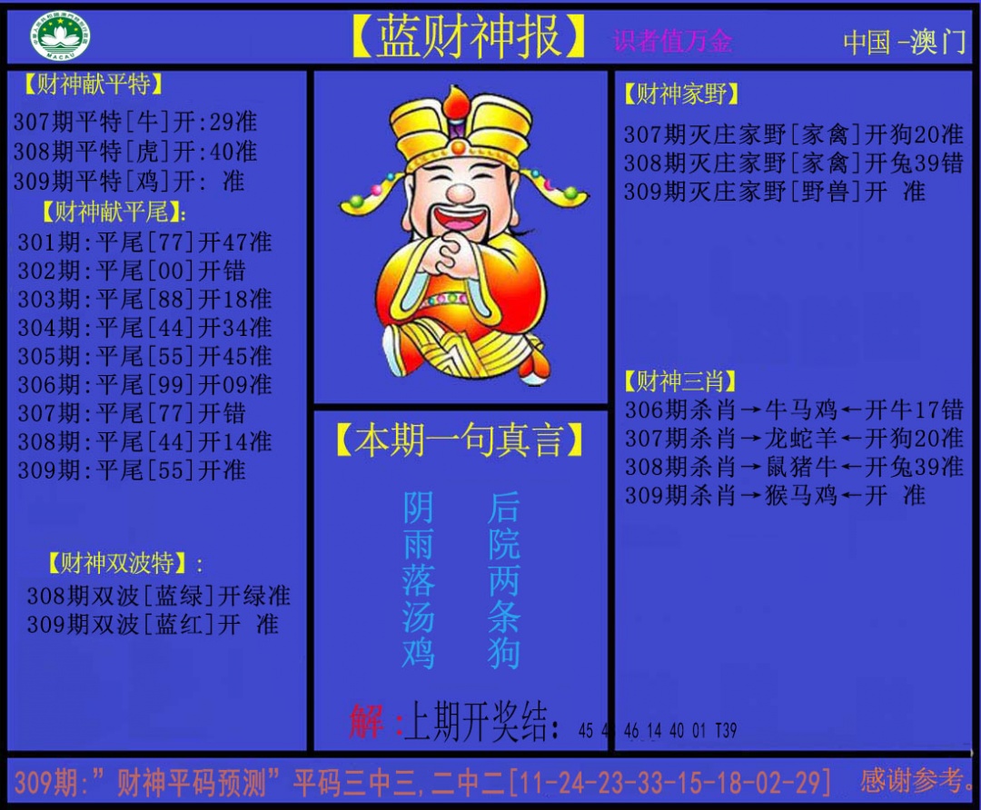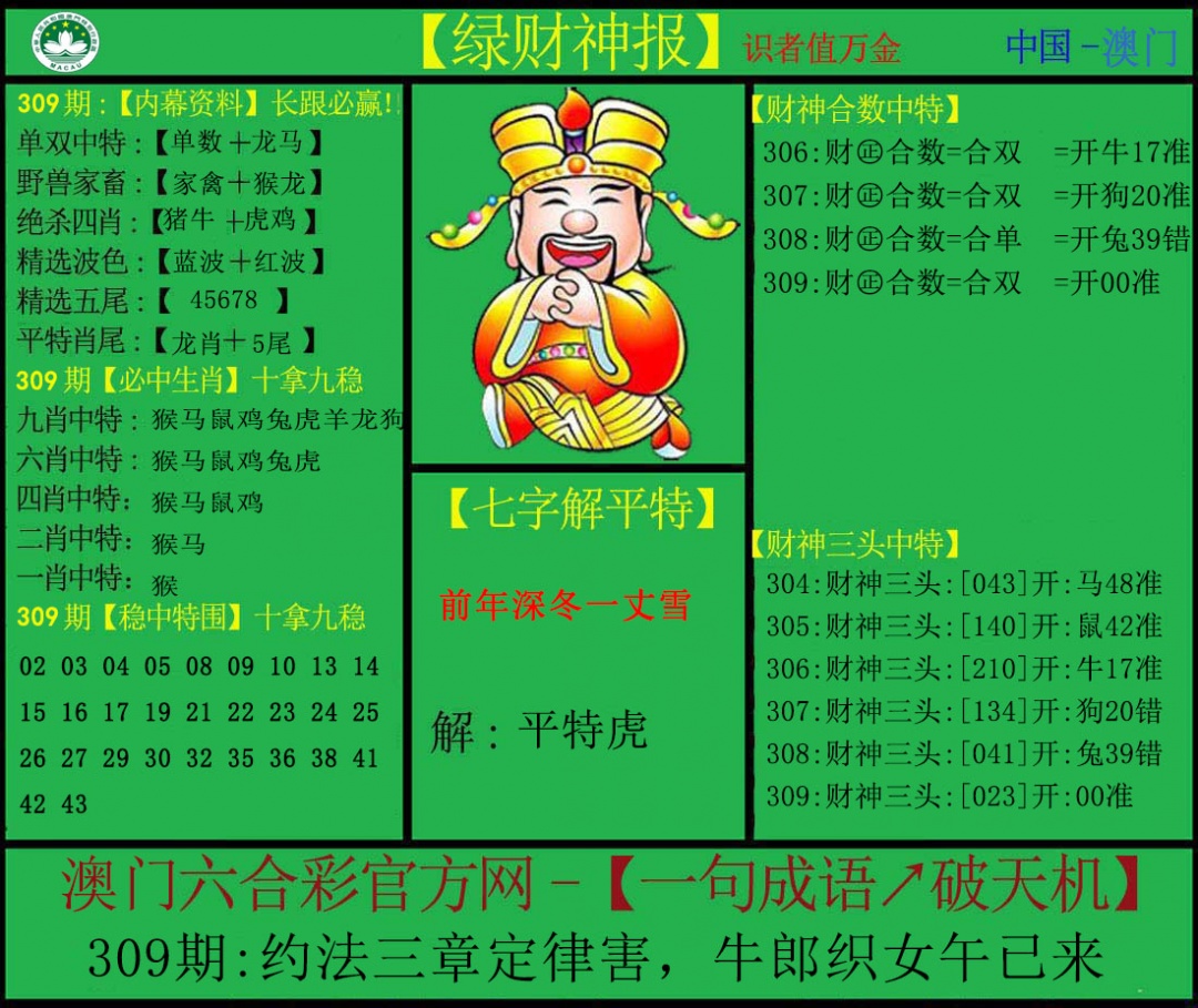 | 308期:平特肖【猴】三连肖【猴鸡马】 |